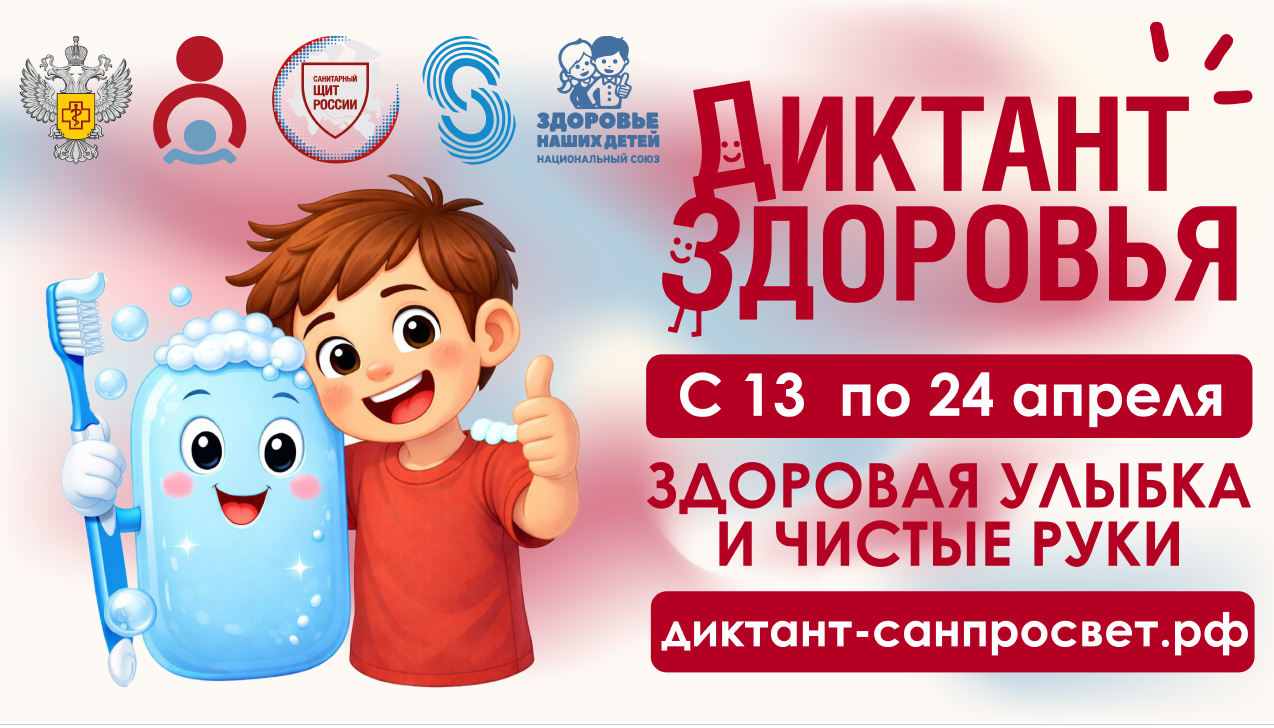 С 13 по 24 апреля 2026 года Роспотребнадзор запускает первый тематический трек Всероссийской санитарно-просветительской акции «Диктант здоровья»