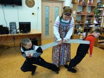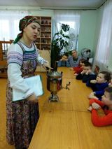Дети узнали о русском самоваре и о традициях русского чаепития. Поиграли в народные игры с тётушкой Лукерьей.