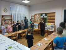Добровольцев клуба «ДАктиС» встречали дети старшего дошкольного возраста групп «Пчёлки» и «Звёздочки». Наши ребята и воспитатели рассказали о своих добрых делах дома и в детском саду. В свою очередь старшее поколение поделились опытом волонтерской деятельности. Вместе поиграли в игры «Какого цвета доброта», «Наши добрые дела»,«Покажи и повтори».
