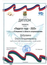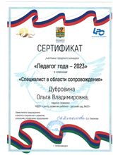 Дубровина Ольга Владимировна , педагог-психолог детского сада, стала победителем в профессиональном конкурсе мастерства  "Педагог года - 2023 " , в номинации  "Специалист в области сопровождения"
